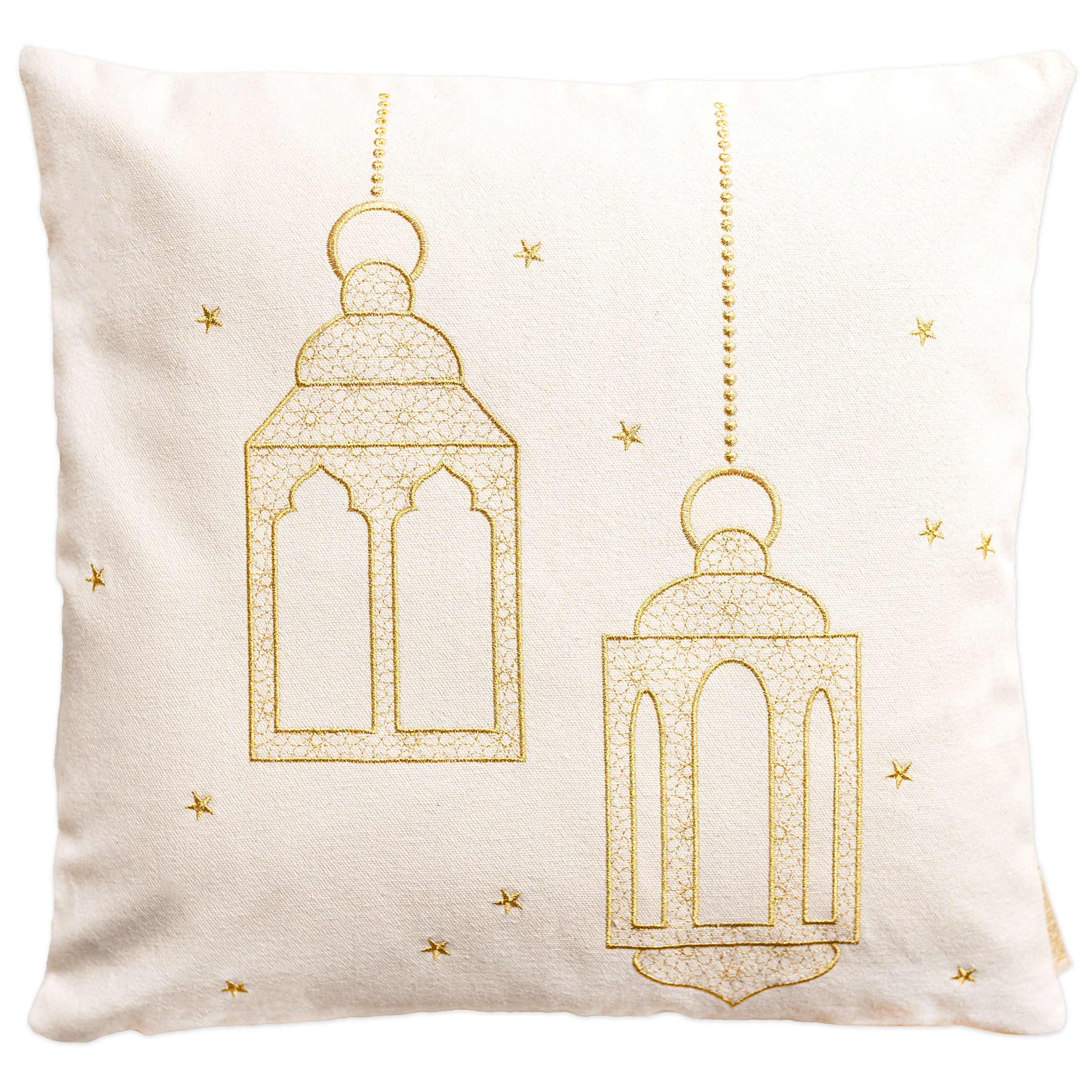 Mit diesem Kissenbezug aus hochwertigem Stoff und eleganter goldener Bestickung kommt orientalische Stimmung in dein Haus. Die hochwertige Bestickung mit Goldfäden verleiht deinem Zuhause im Handumdrehen einen individuellen und eleganten Look. Der Kissenbezug hat eine Größe von 40x40cm und kann jährlich zu Ramadan genutzt werden.